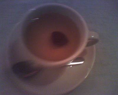 第七道, 餐後飲料. 這是我的熱紫蘇梅. 裡面一顆青梅, 吃起來還有點Q軟感.