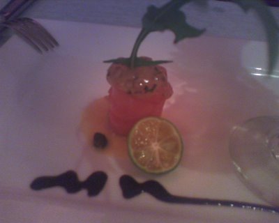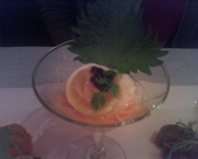 第五道, 好像是叫做雪霜吧? 是用來清醒味蕾的. 這表示... 下一道是主餐.