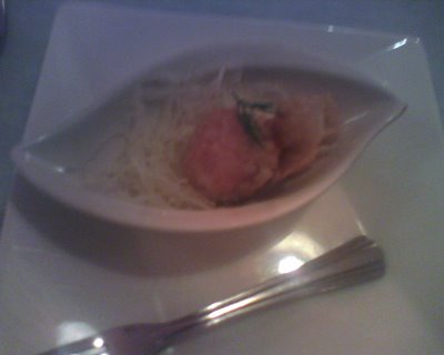 第一道... 這果然我的記憶不行了, 這是個什麼東東, 好像是炸出來的, 但沒油炸味. 外皮脆脆的, 吃不出什麼味道, 但很順口.
