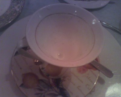 我接過來喝, 不覺得苦. 可能老婆剛吃了甜點吧. (老婆是先吃第八道的甜點, 才喝茶的)