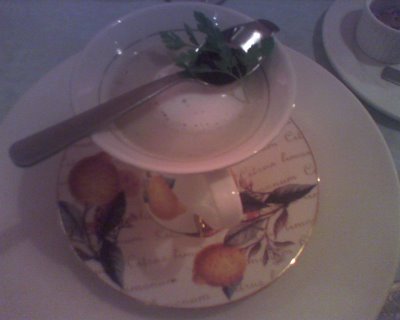 服務生說, 把湯匙放進去攪散, 就可以喝了.